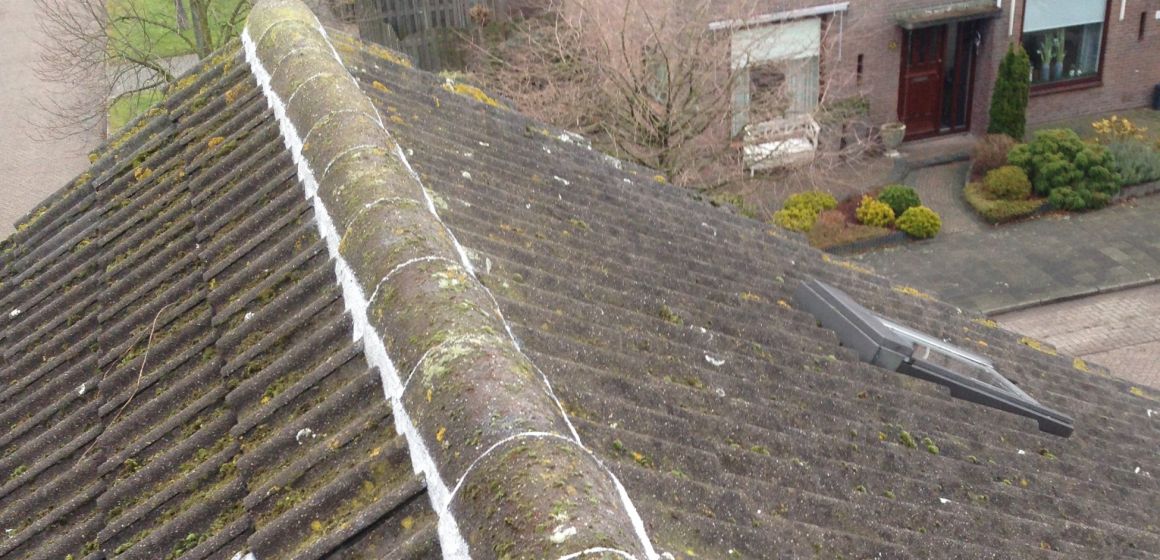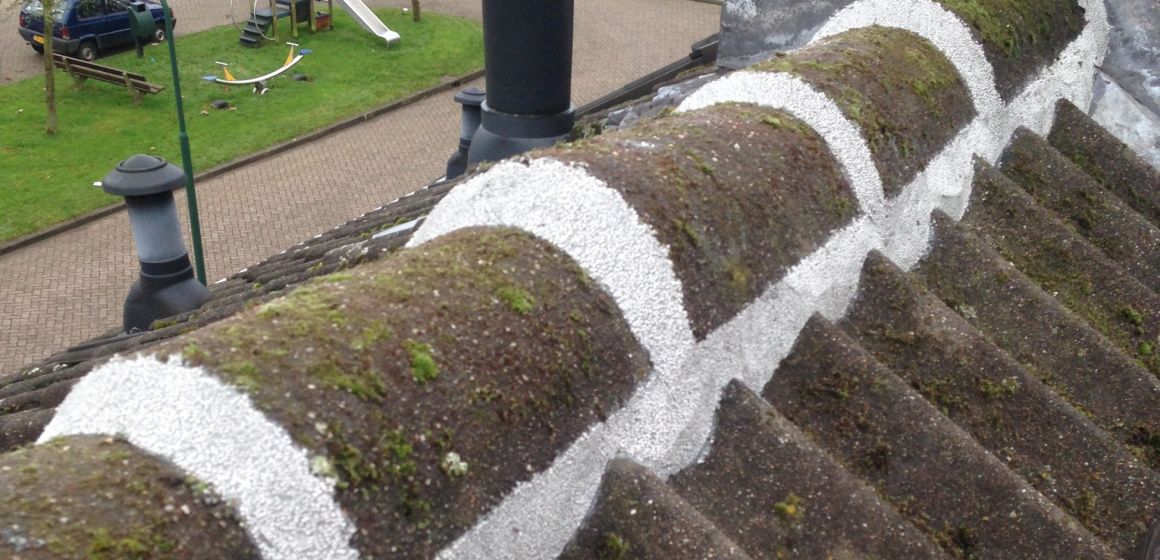 Hier hebben wij de nok die erg los lag geheel in de kunststof gezet, zodat de pannen weer stormvast liggen en waterdicht!
